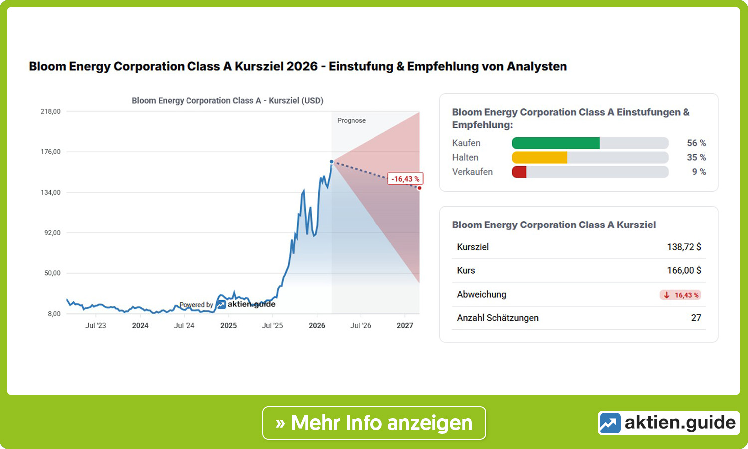 Der Umsatz des Konzerns stieg 2025 um 37 Prozent auf 2,02 Milliarden Dollar und soll im laufenden Jahr dank eines hohen Auftragsbestands auf 3,1 Milliarden bis 3,3 Milliarden Dollar klettern. Diese Anfang Februar veröffentlichte Prognose lag deutlich über dem damaligen Marktkonsens. Ein Knackpunkt ist allerdings die Bewertung. Die Analysten von TD Cowen verwiesen zuletzt auf das inzwischen ambitionierte Niveau, weshalb es trotz des auf 160 Dollar erhöhten Kursziels nur zu einer „Halten“-Empfehlung reichte. Das Konsens-Kursziel der bei aktien.guide hinterlegten Studien liegt mit rund 139 Dollar sogar noch ein gutes Stück niedriger.