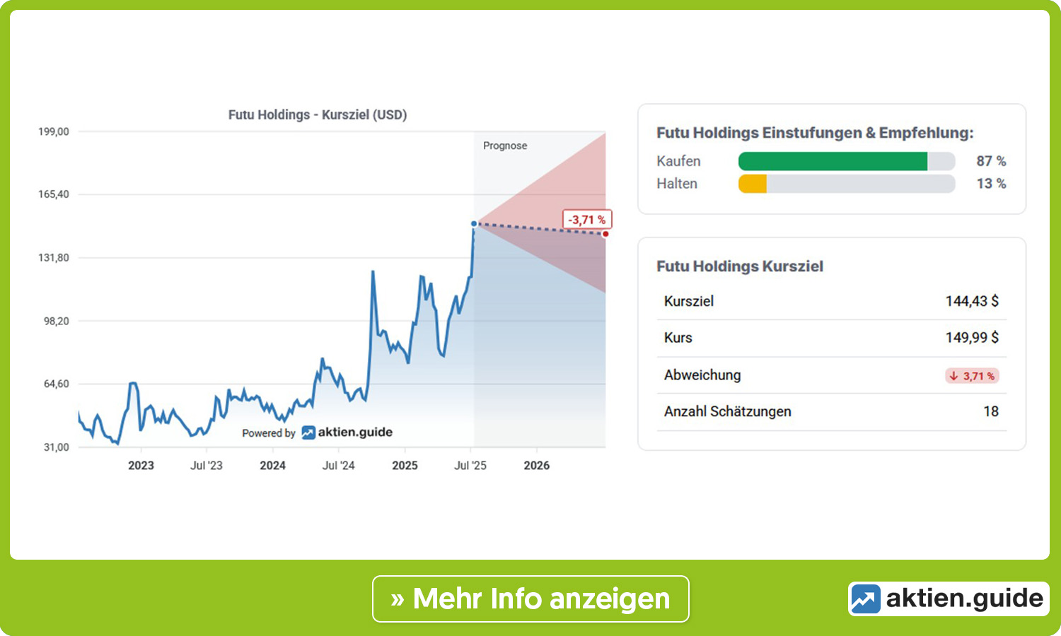 Die Firma Futu Holdings Limited dürfte vielen deutschen Investoren noch kein Begriff sein. Dabei kann sich die Geschäftsentwicklung durchaus sehen lassen. Das technologiegetriebene Online-Brokerage- und Vermögensverwaltungs- Unternehmen wurde im Jahr 2012 gegründet und bietet seinen Kunden über zwei digitale Plattformen ein breites Spektrum an Investmentdienstleistungen an. Der Umsatz ist in den vergangenen Jahren deutlich gestiegen und auch der Nettogewinn hat sich sehr positiv entwickelt. Im Startquartal des laufenden Geschäftsjahres verdoppelte sich der Überschuss auf 2,14 Millionen Hongkong-Dollar (HKD) und die Gewinnmarge stieg von 39,9 Prozent im Vorjahr auf 45,6 Prozent. Gestützt wurde der positive Trend unter anderem durch steigende Handelsvolumina sowie die Beteiligung an mehreren namhaften Börsengängen in Hongkong.