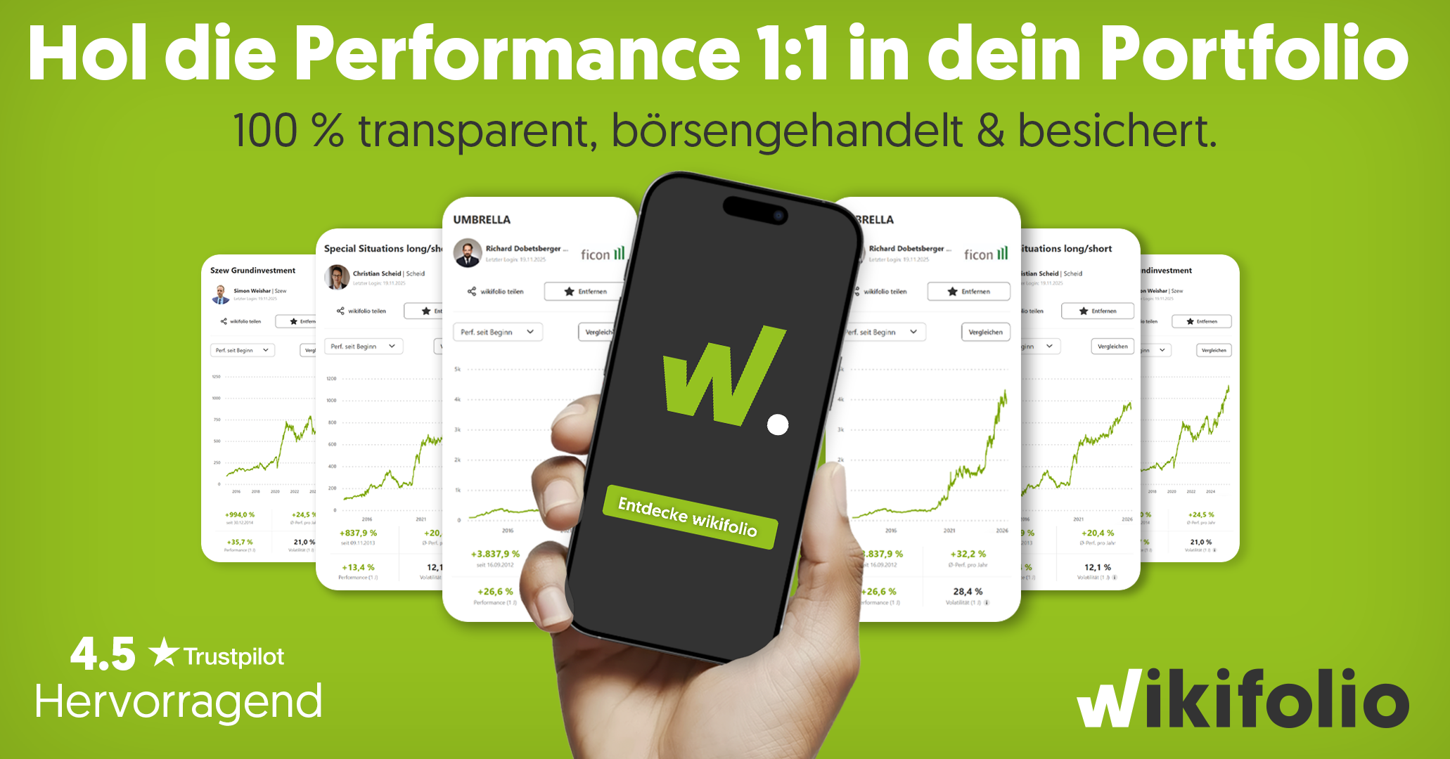 Auf wikifolio.com findest du Investment-Strategien die dein Depot sofort verbessern können. 100% transparent, börsengehandelt & besichert.