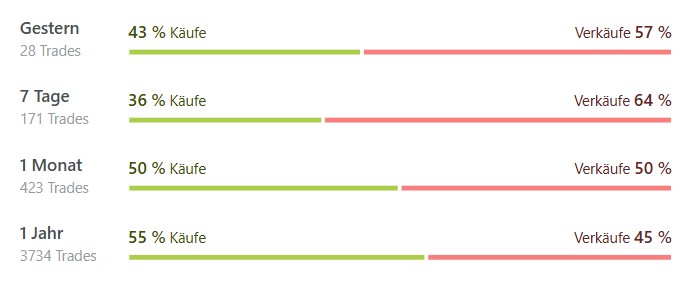 Eine ähnliche Entwicklung wie jetzt gab es in der jüngeren Vergangenheit schon zweimal. Zu Jahresbeginn stieg der Kurs innerhalb weniger Wochen von unter 80 Euro auf knapp 140 Euro, um bis in den April hinein die Gewinne fast komplett wieder abzugeben. Im Anschluss ging es von 87 Euro auf 121 Euro hoch (auch ein Plus von fast 40 Prozent) und dann wieder zurück auf (fast) das Ausgangsniveau. Man darf gespannt sein, was nach dem aktuellen Höhenflug (bislang plus 75 Prozent) passiert. Die wikifolio Trader haben jedenfalls vorgesorgt und in den vergangenen Tagen mehrheitlich auf der Verkäuferseite gestanden. Wer kann es ihnen nach dieser Rally verdenken?