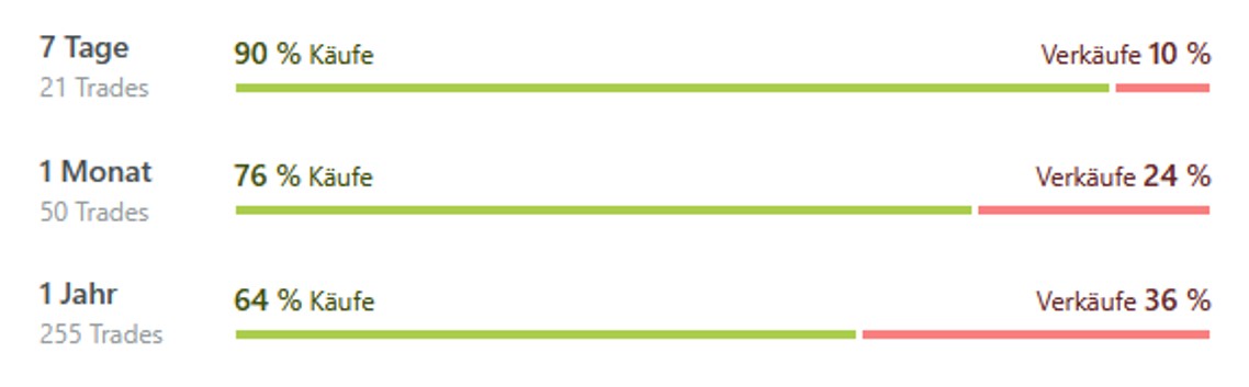 Mehrere wikifolio Trader haben in den vergangenen Tagen nach dem bewährten Motto „sell on good news“ gehandelt. Das aktuelle Trading-Sentiment der Deutschen Bank zeigt einen leichten Überhang der Verkäufe. Gerald Asamer hat am vergangenen Dienstag in seinem wikifolio Smart and Strong den komplette Restbestand an Deutsche Bank-Aktie verkauft und dabei einen Gewinn von gut fünf Prozent realisiert. Nach dem Einstieg Ende Juli hatte er bereits im Oktober erste Gewinnmitnahmen getätigt. Der Trader will sich an Firmen beteiligen, die aus seiner Sicht „über eine überzeugende strategische Ausrichtung und attraktive Perspektiven verfügen“. Diese Strategie fährt er in dem wikifolio seit gut zwei Jahren und konnte seitdem ein Kursplus von fast 40 Prozent generieren.