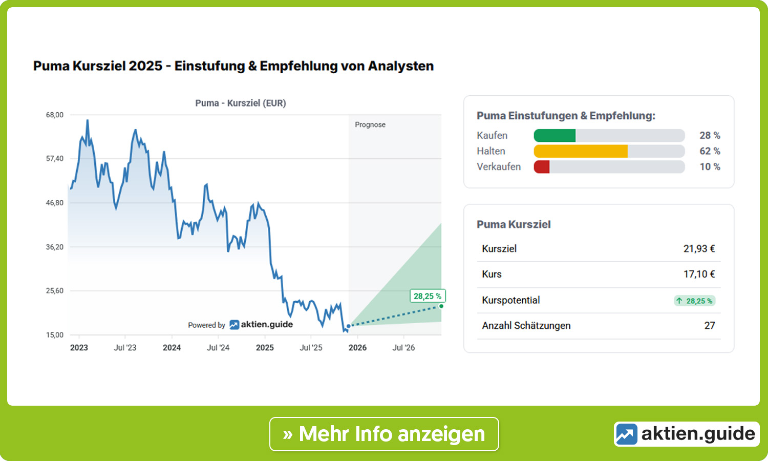 Schon vor drei Monaten hatte es Meldungen gegeben, wonach die französische Milliardärsfamilie Pinault über den Verkauf ihrer 29-prozentigen Beteiligung an nachdenkt. Damals war allerdings von Preisvorstellungen um die 40 Euro je Aktie die Rede. Klingt ambitioniert. Vergangene Woche war der Kurs auf ein Mehrjahrestief von 15,30 Euro gefallen. Der strategische Turnaround-Plan des Vorstands wird von einigen Analysten kritisch beäugt. Laut aktien.guide liegt das durchschnittliche Kursziel aktuell bei rund 22 Euro. Die Aktie notiert nach dem Anstieg heute bei knapp 20 Euro.