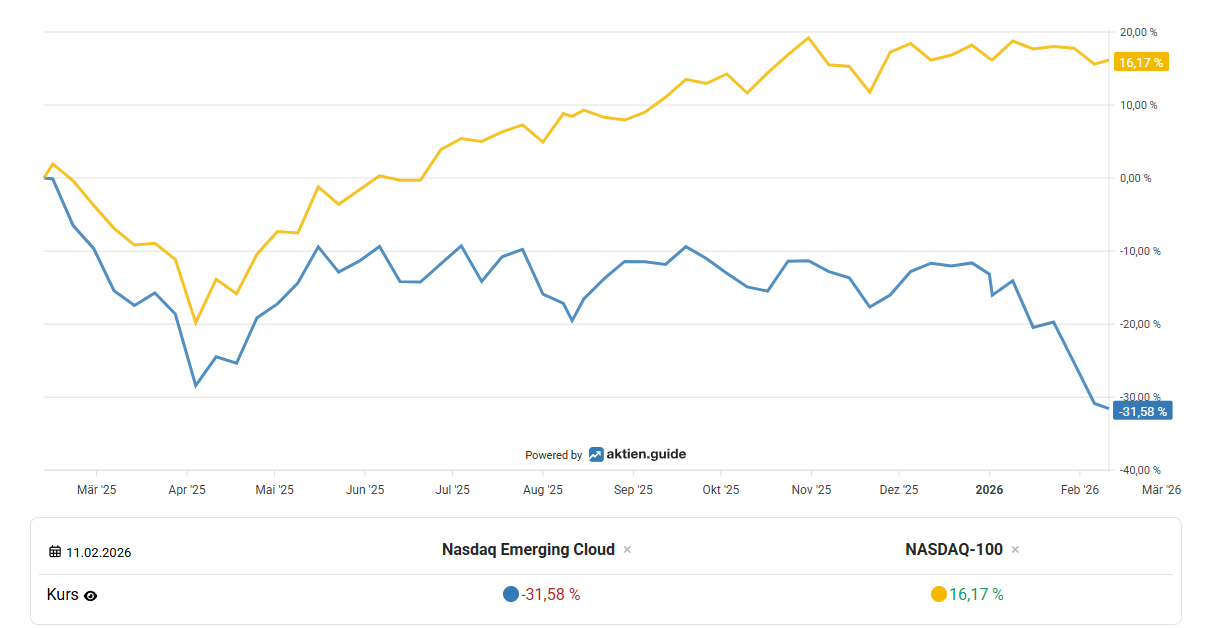 Der Nasdaq Emerging Cloud Index hat laut aktien.guide binnen eines Monats ein Fünftel seines Wertes verloren. Manche Titel wie zum Beispiel jene von , eines israelischen Anbieters von CRM- und Projektmanagementsoftware, rasselten in nur wenigen Tagen gut 30 % südwärts – und haben sich damit alleine 2026 halbiert. Prominentere Opfer der Angst vor KI-Agenten waren zuletzt oder . Die Liste der Betroffenen ist lang: Auch die deutsche und selbst , oder konnten dem Druck nicht standhalten.
