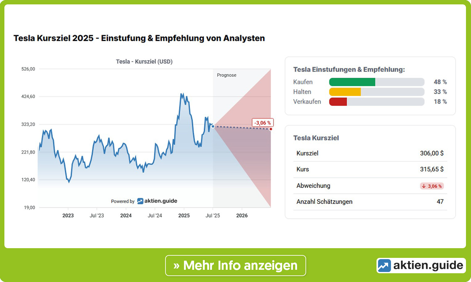 Im Börsenkurs waren die schwachen Absätze wohl schon eingepreist. Nachdem die Aktie am Dienstag als Reaktion auf den erneuten Streit zwischen Musk und Donald Trump etwas deutlicher gefallen war, konnten die Verluste im US-Handel gestern wieder wettgemacht werden. Seit Jahresbeginn pendelt der Kurs zwischen 214 und 440 Dollar. Die Kursziele der Analysten schwanken in ähnlichem Umfang. Dass der faire Wert im Durchschnitt aktuell fast exakt dem Kurs der Aktie entspricht, ist purer Zufall. Allein der extrem breite Kursziel-Korridor, der laut aktien.guide von gerade mal gut 19 Dollar bis 525 Dollar reicht, zeigt die Herausforderung bei der Bewertung dieses Unternehmens. Was auch damit zu tun hat, dass sich die Erträge von Tesla nur sehr schwer vorhersagen lassen. Die Gewinnschätzungen für das laufende Jahr lagen zum Beispiel Anfang 2025 noch bei 3,34 Dollar je Aktie. Aktuell traut man dem Konzern nur noch 1,83 Dollar zu. Für das kommende Geschäftsjahr sind die Konsensschätzungen in diesem Zeitraum von 4,13 auf 2,79 Dollar gesenkt worden. 2027 sollen es dann 3,67 Dollar werden.